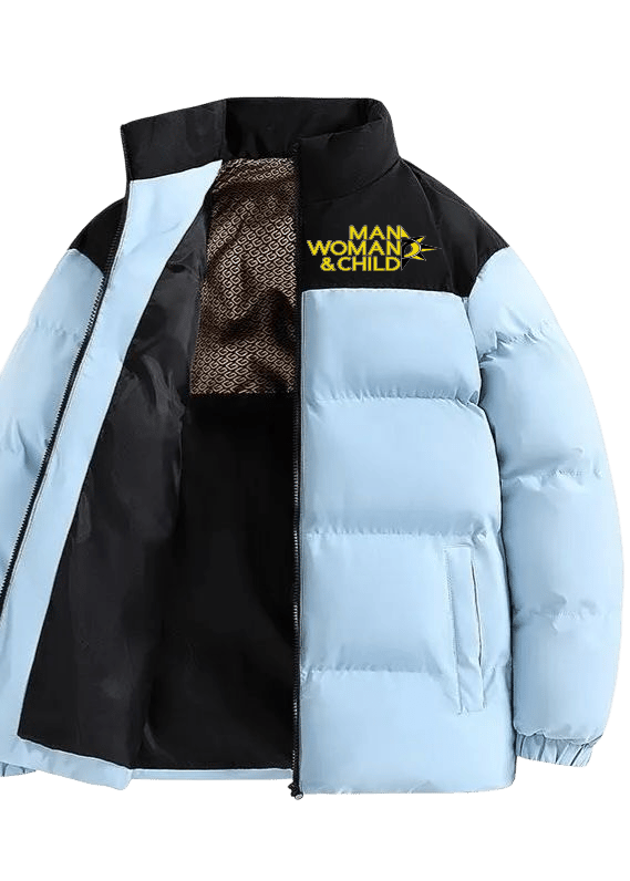 The Man, Woman, And Child Design Embroidered On A TNF 700 Blank Puffer Coat. Stay Warm And Fashionable This Winter With A Divine Graphix Ink®️ Original!